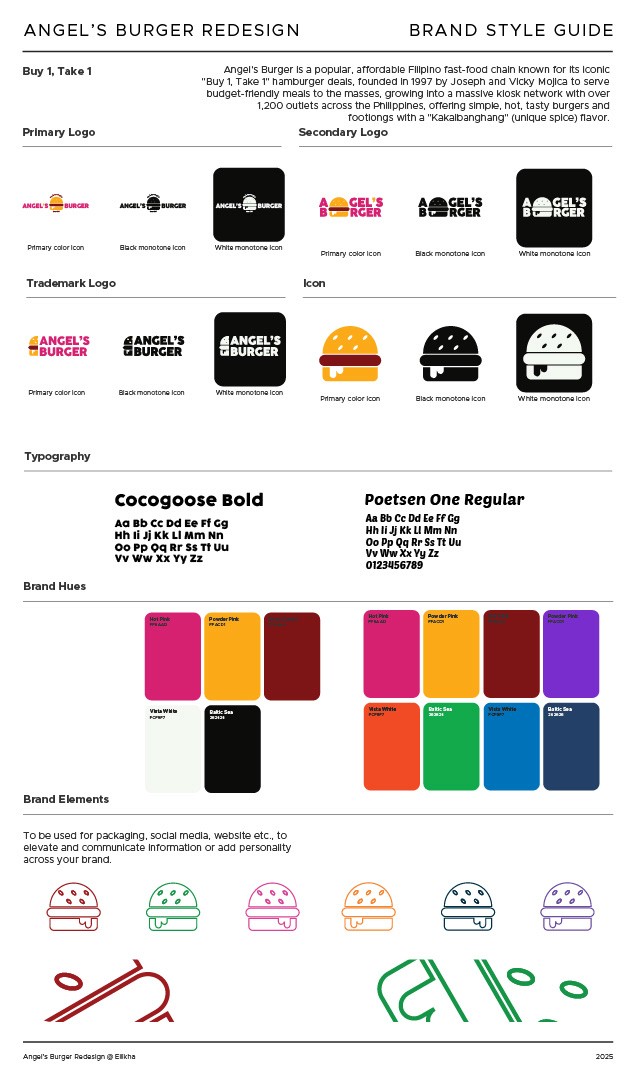We were tasked to redesign a popular local brand here in the Philippines. We chose to redesign Angel's Burger's Brand Identity.