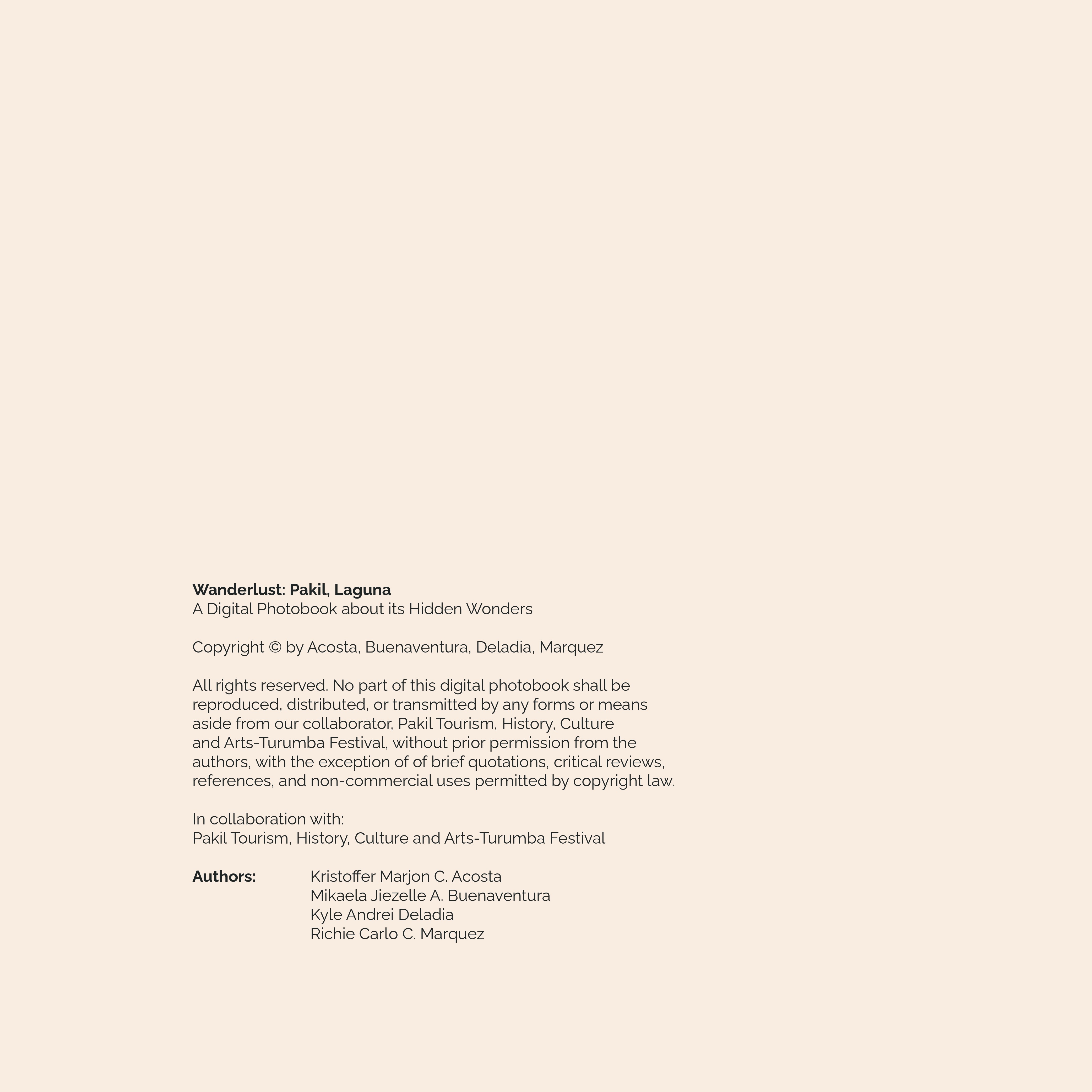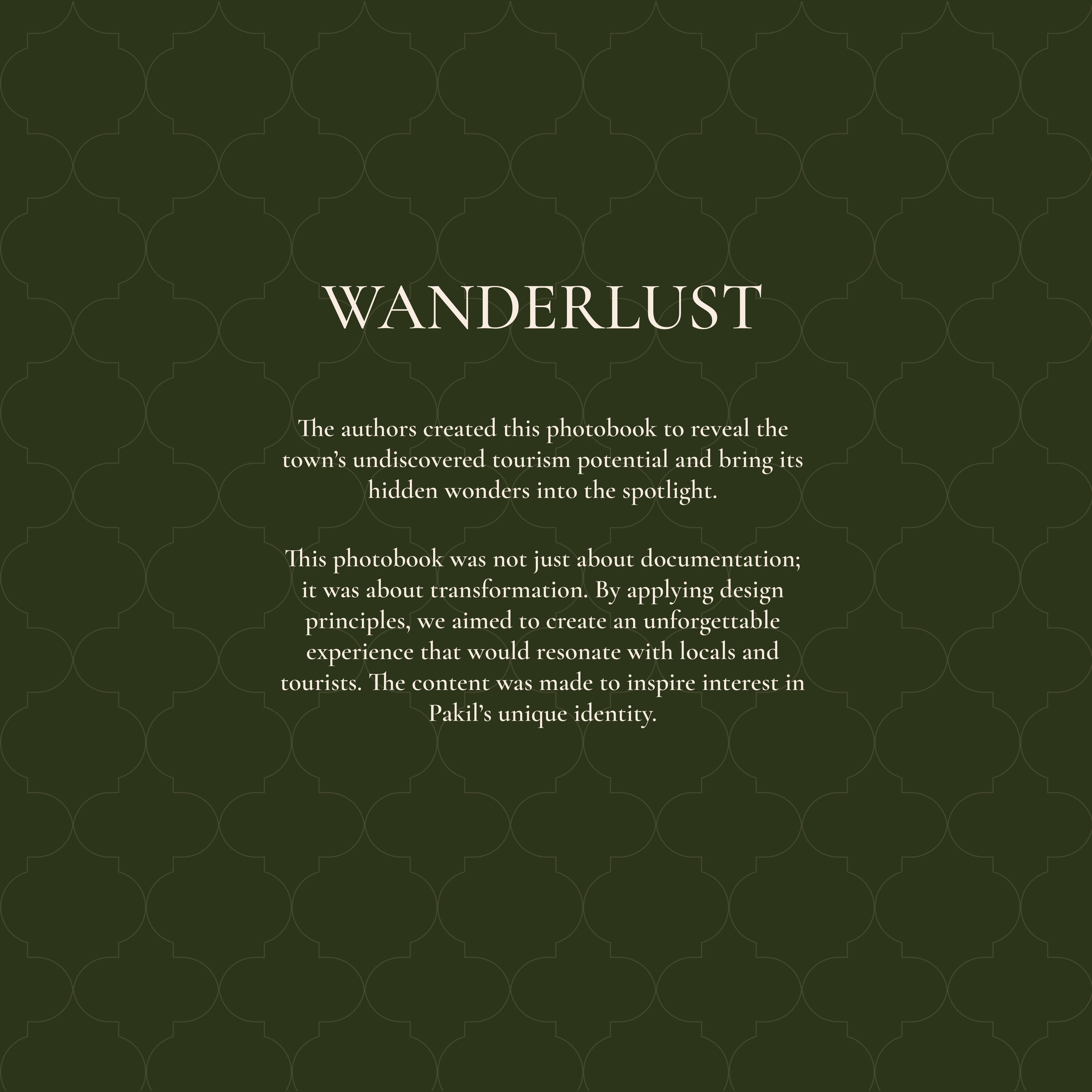 Wanderlust is a thesis project in collaboration with the Pakil Tourism Office to help promote the hidden wonders of Pakil, Laguna in a form of an interactable digital photobook.
