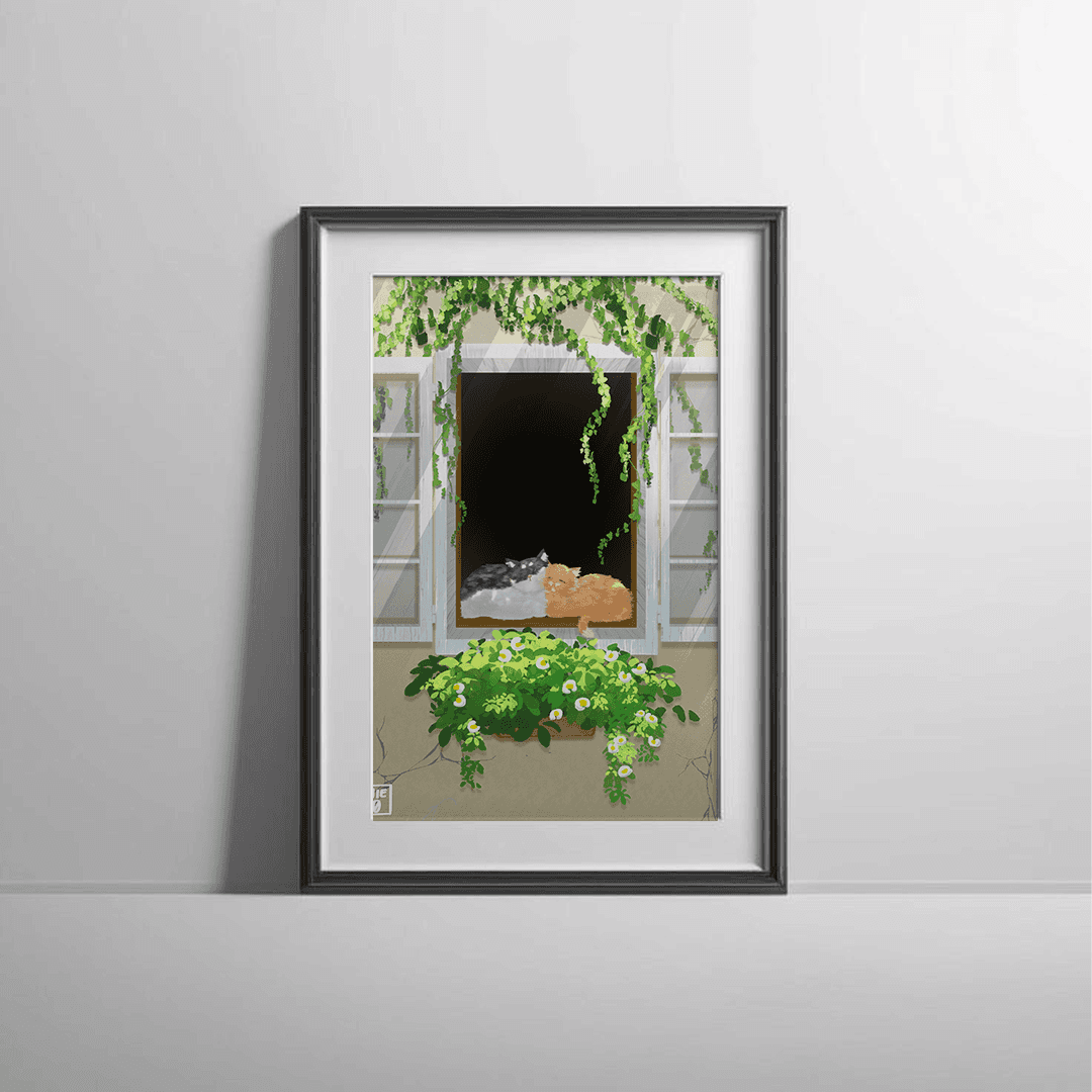 My beloved cat "Patchi" recently gave birth to a lively litter of kittens, always huddled together in a cozy bundle. These two, in particular, joyfully chase the warm sun rays that filter through the window and settle into a fluffy clump, purring contentedly in the gentle warmth.